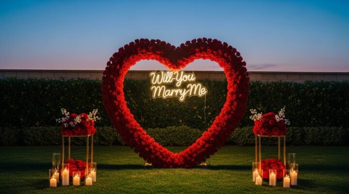 The Promise (Marry Me Setup 2) For the romantic at heart who envisions a picture-perfect, floral-forward proposal, this setup is nothing short of a red rose